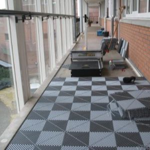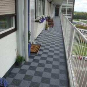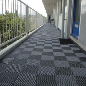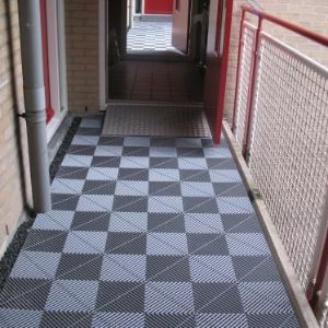 SwissDeck ® eignen sich perfekt für Galerien, Korridore in Mehrfamilienhäusern. Verlegen Sie die Moduele auf jedem harten Untergrund. Diese Fliesen sind UV-Beständigkeit. Die oberste Schicht ist rutschfest, dass macht die Moduel sicher in nassen Umgebungen. Mit Wasser spülen, genügt, um den Boden zu reinigen.